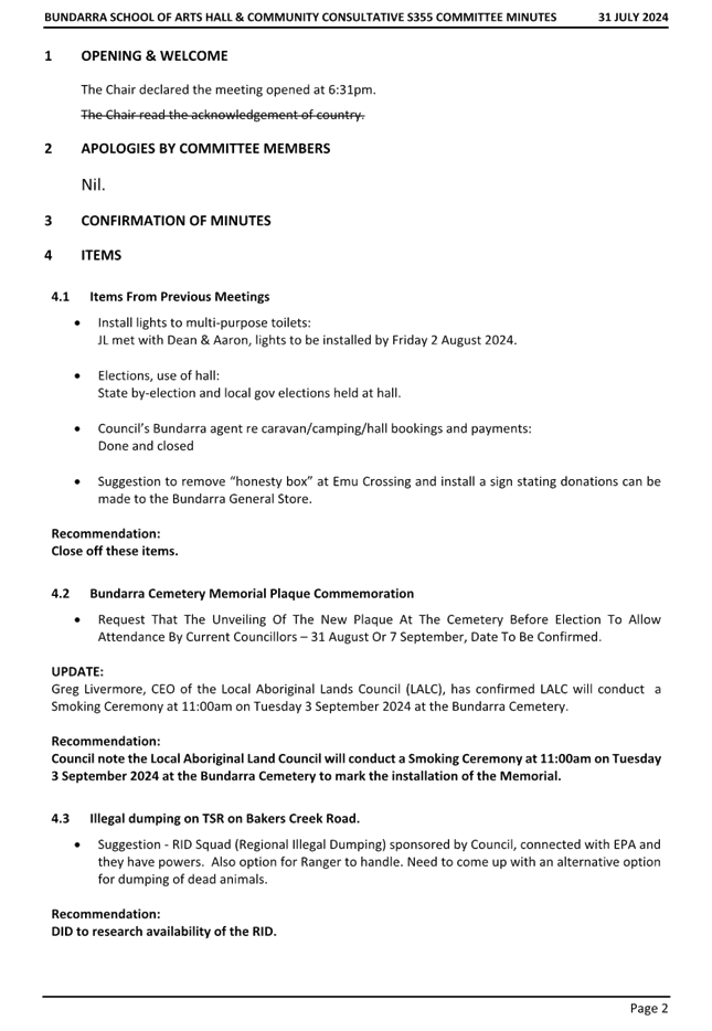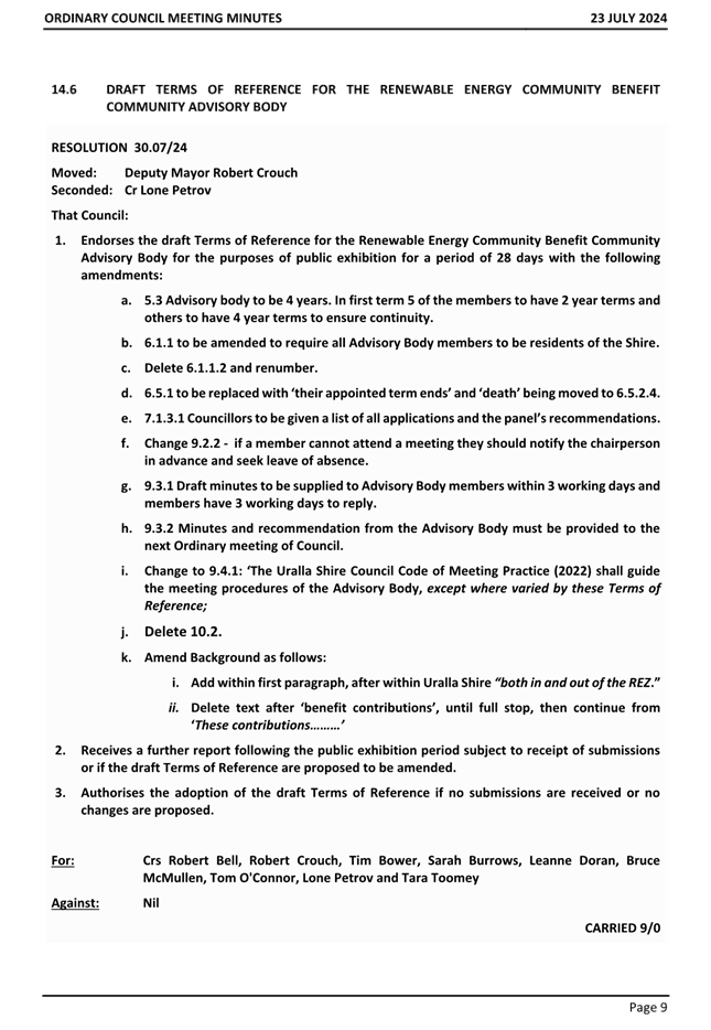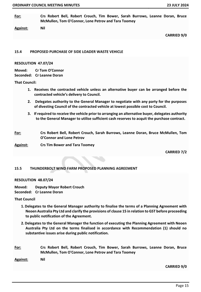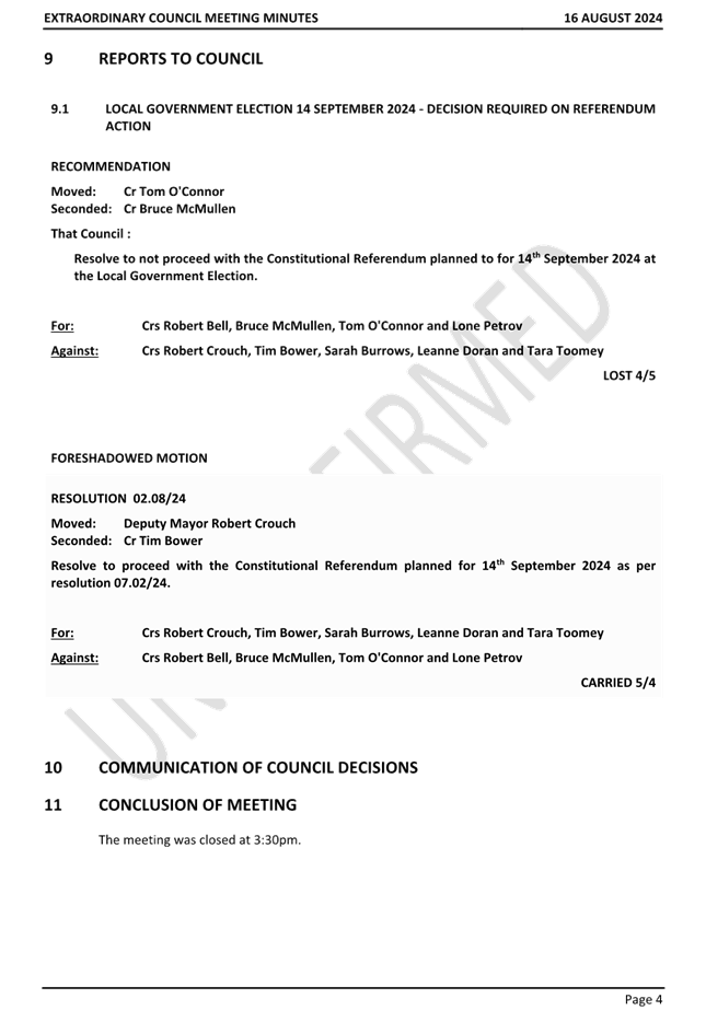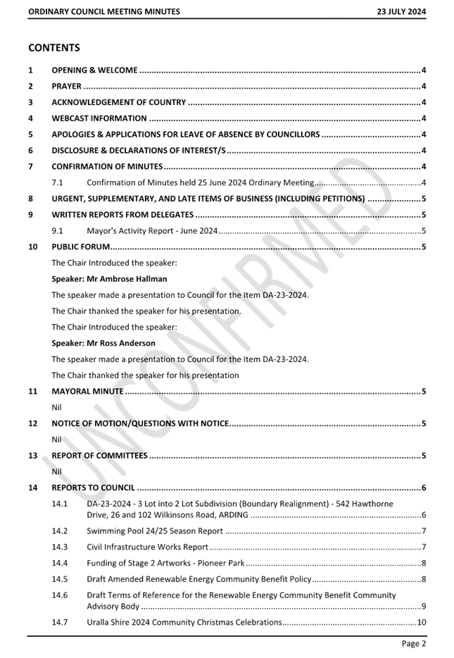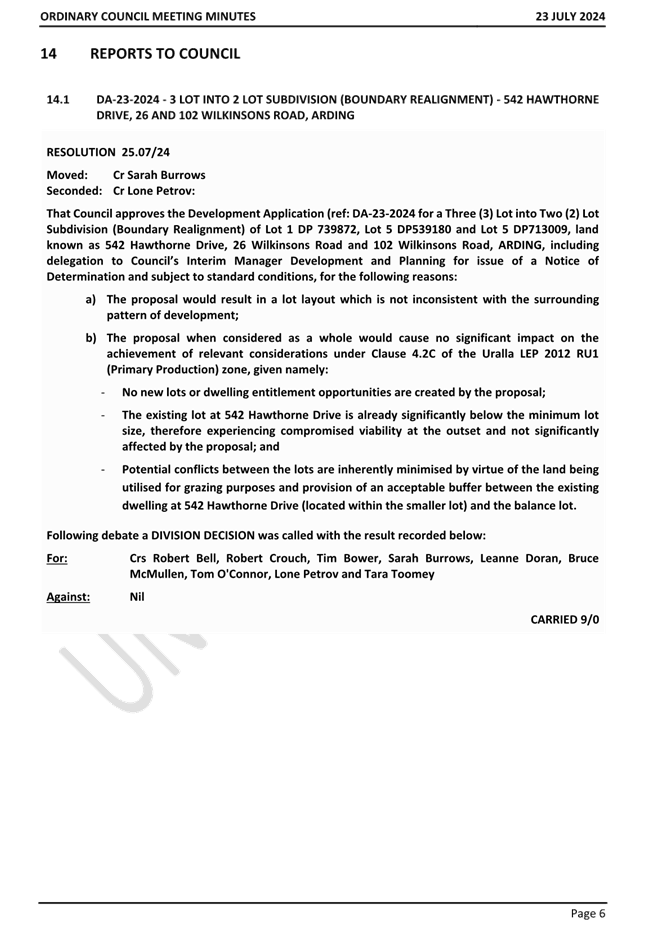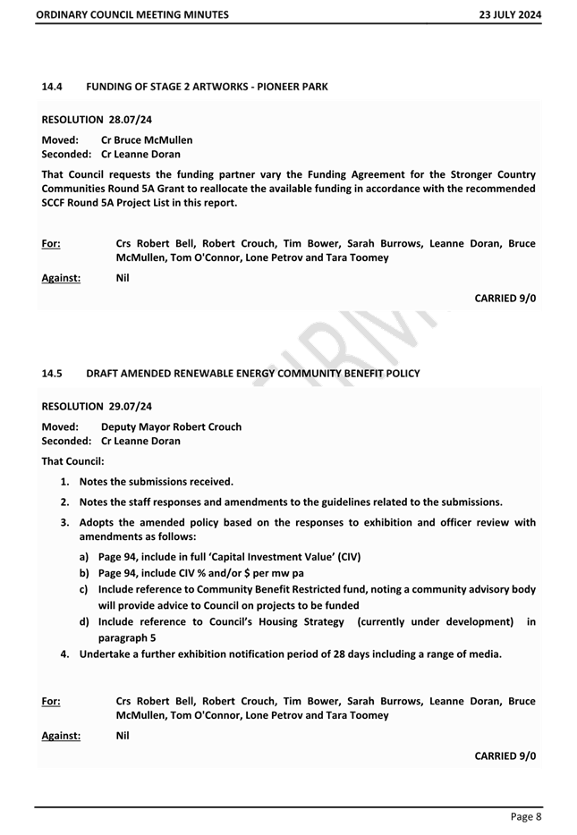 7.1 Confirmation of Minutes held 23 July 2024 Ordinary Meeting