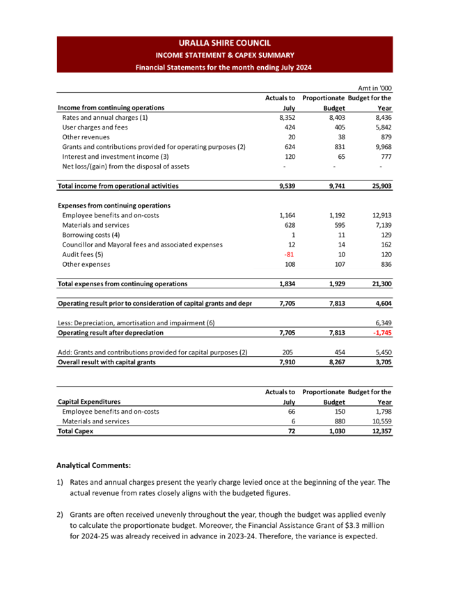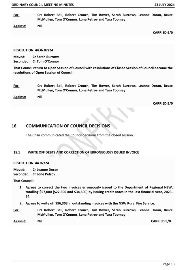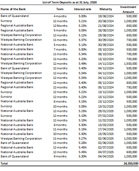 At the 25 June Ordinary meeting of the Council, it was noted that outstanding rates had been increasing. As of 31 July 2024, there was a balance of $1,184,255 in outstanding rates.