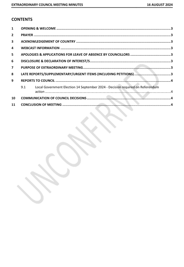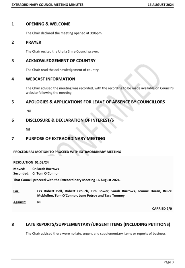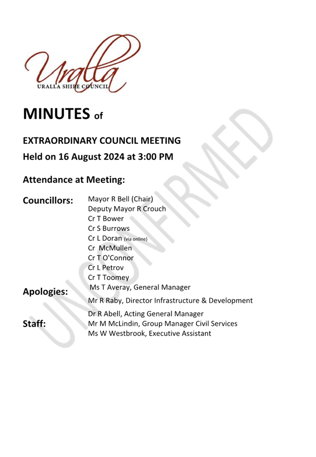 7.2 Confirmation of Minutes held 16 August 2024 Extraordinary Meeting