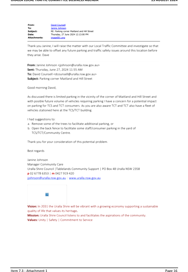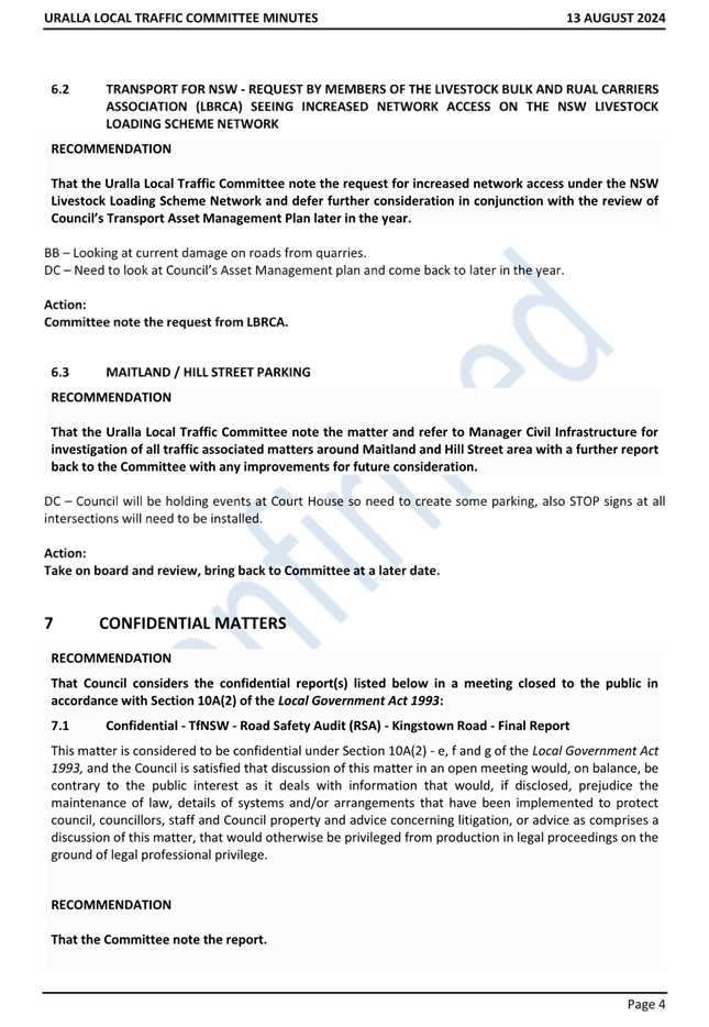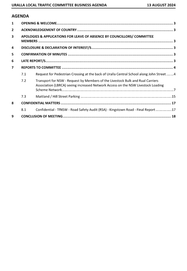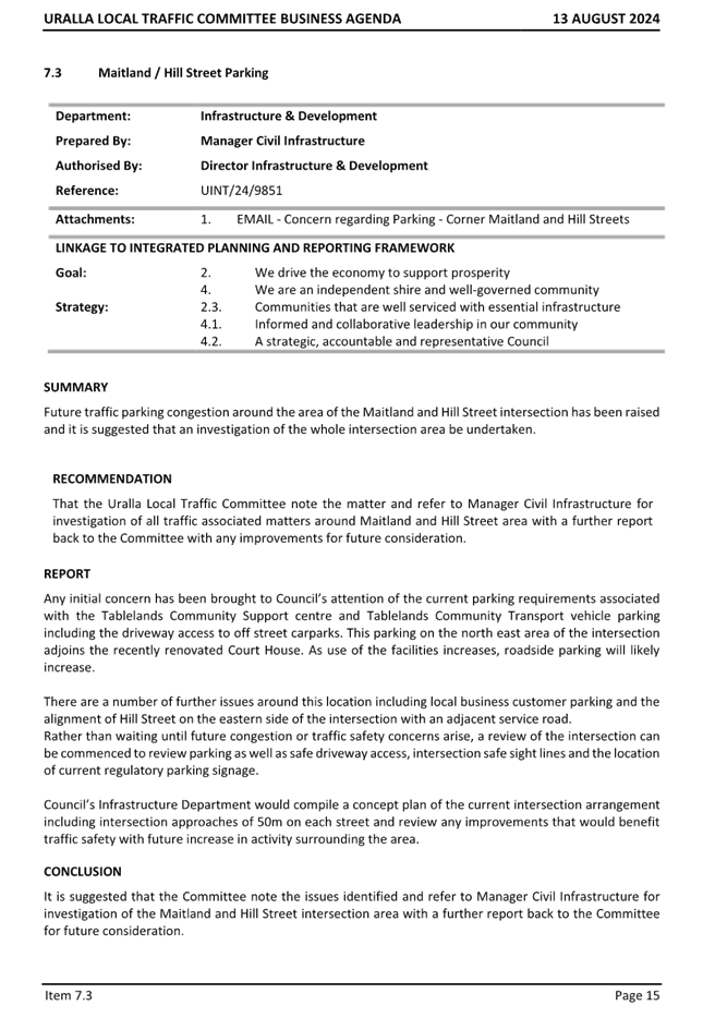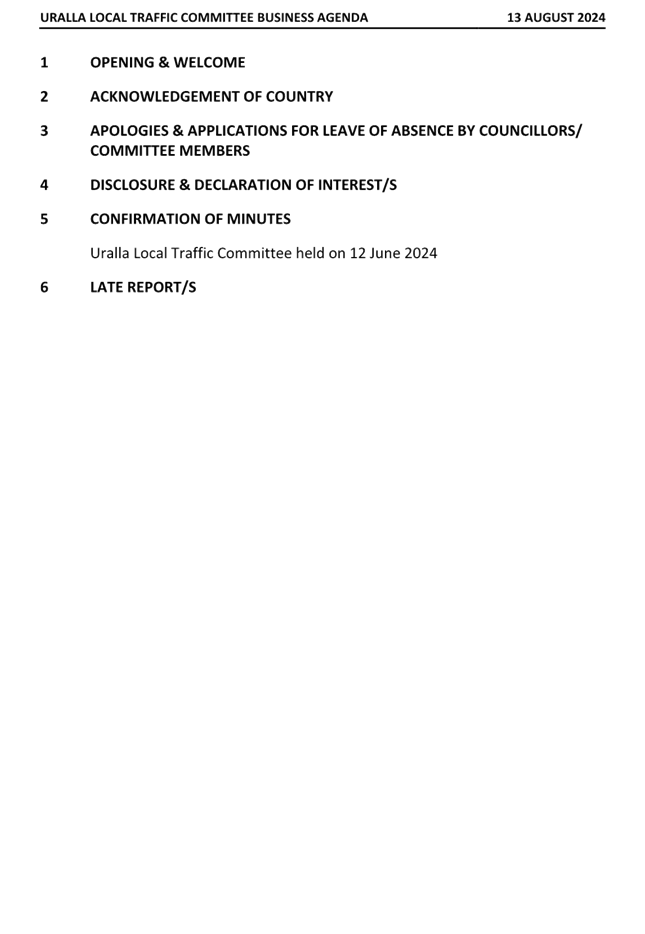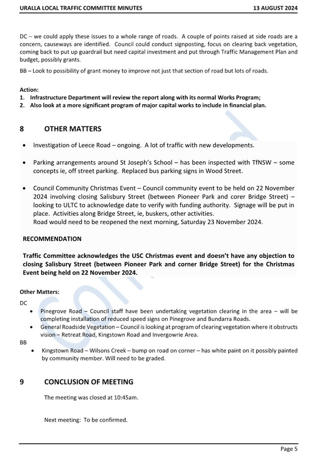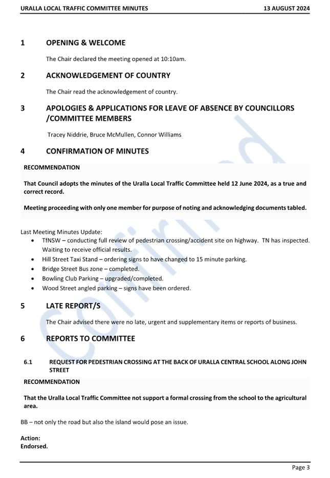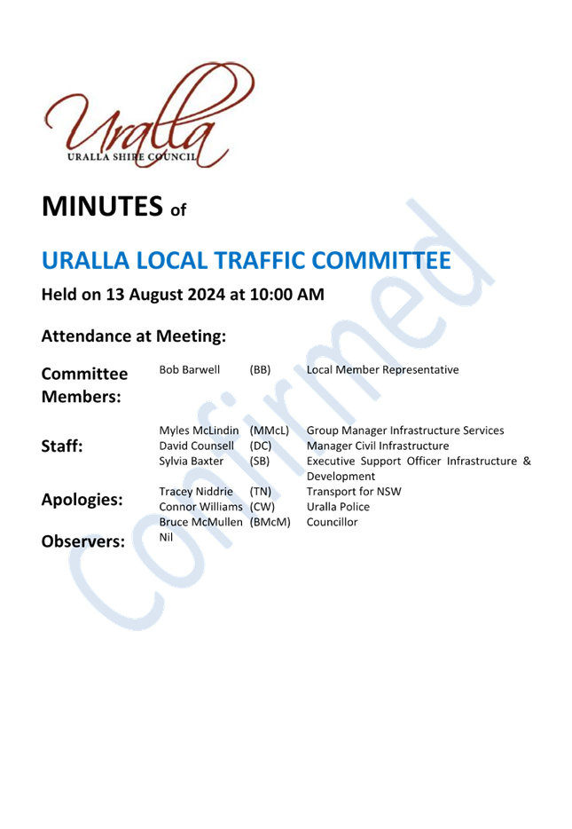 13.1 Uralla Local Traffic Committee (ULTC) - Minutes of Meeting held 13 August 2024