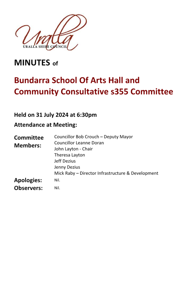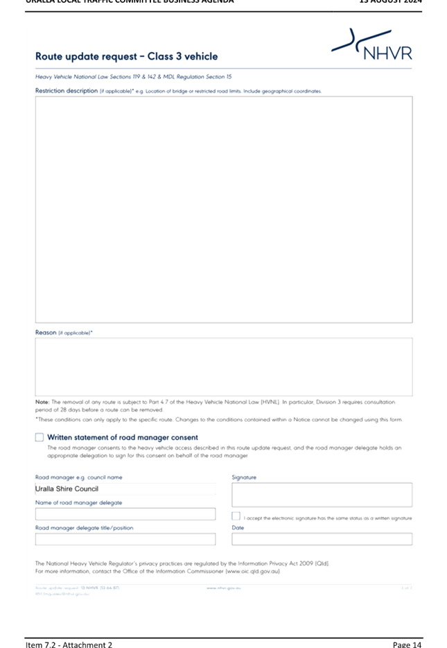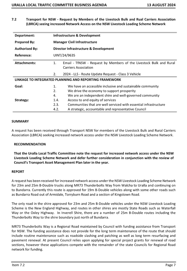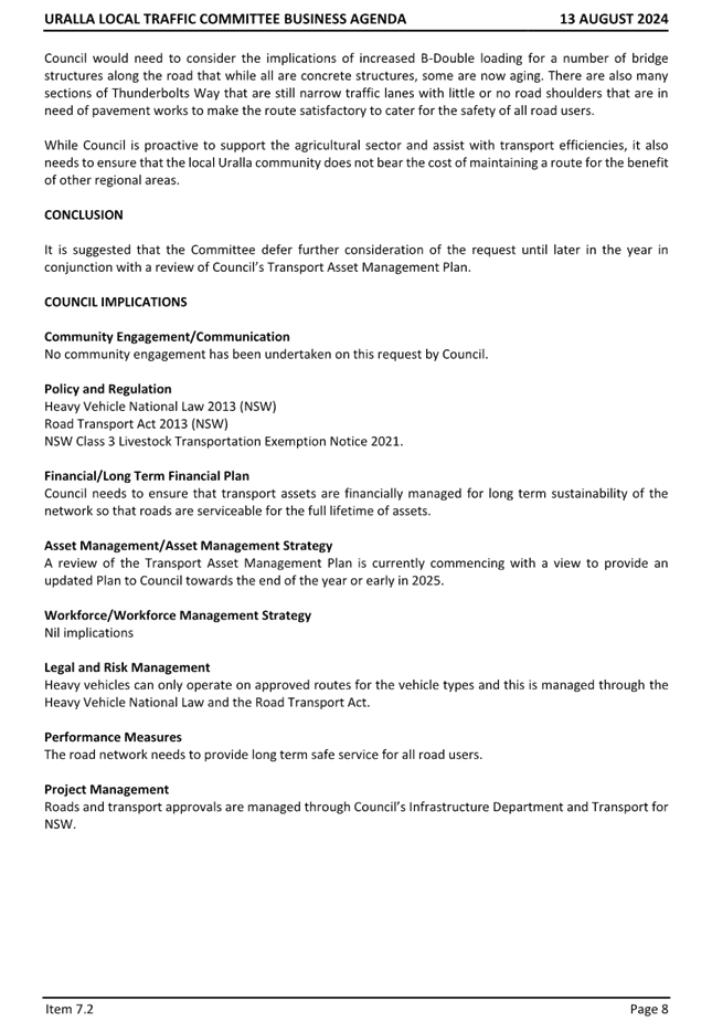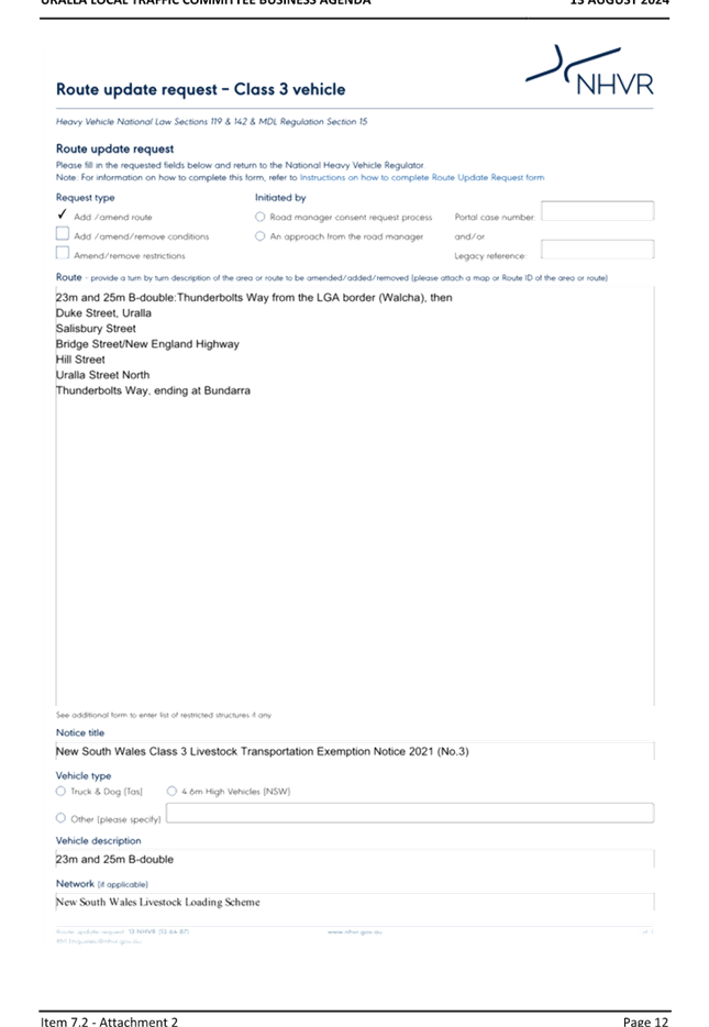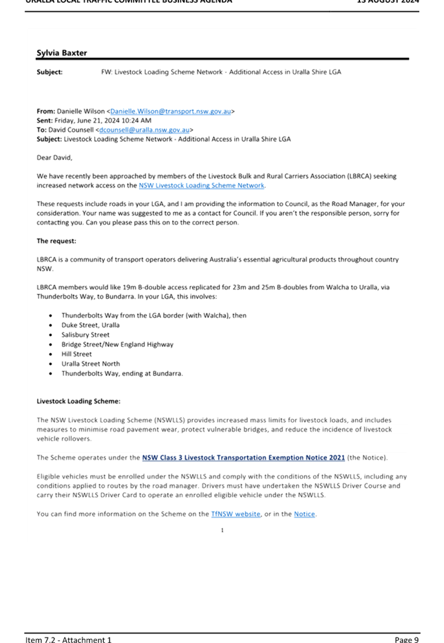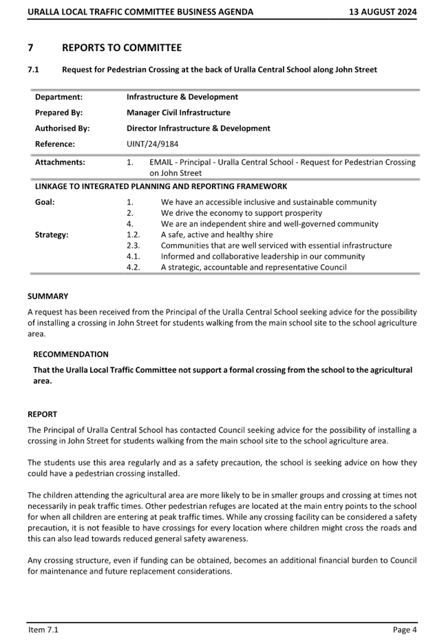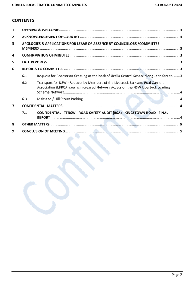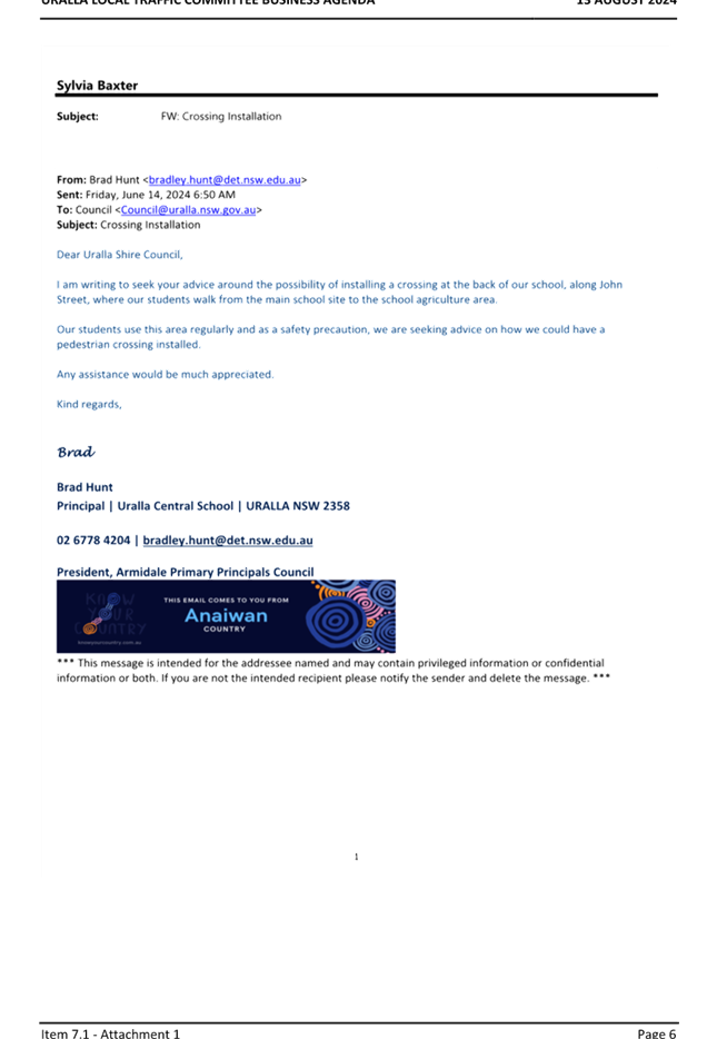 13.1 Uralla Local Traffic Committee (ULTC) - Minutes of Meeting held 13 August 2024