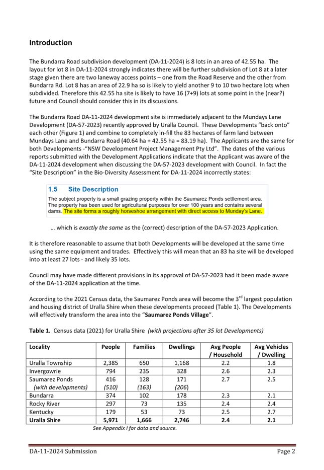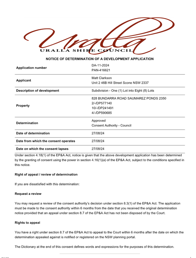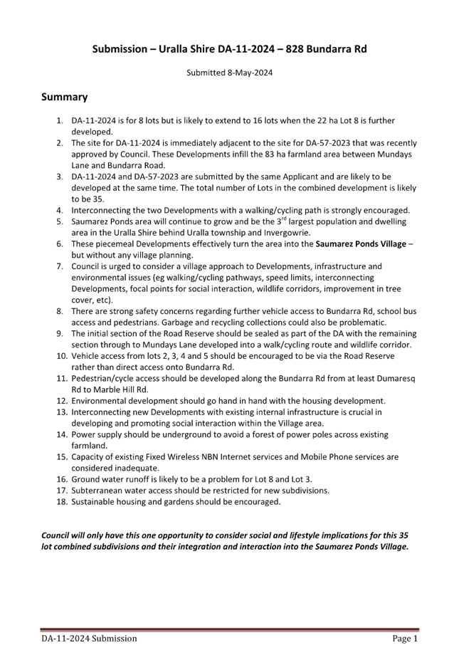 14.1 One (1) into Eight (8) Lot Subdivision - Lot 2 DP577140 - 828 Bundarra Road - Saumarez Ponds