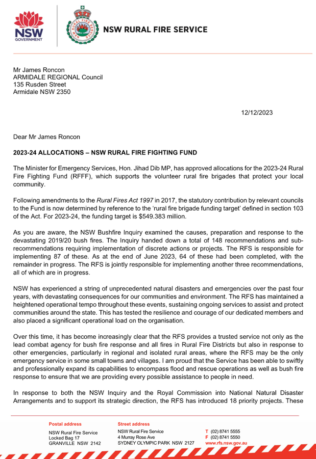 11.1 Mayoral Minute - Major Events for Uralla Shire Council Thank You